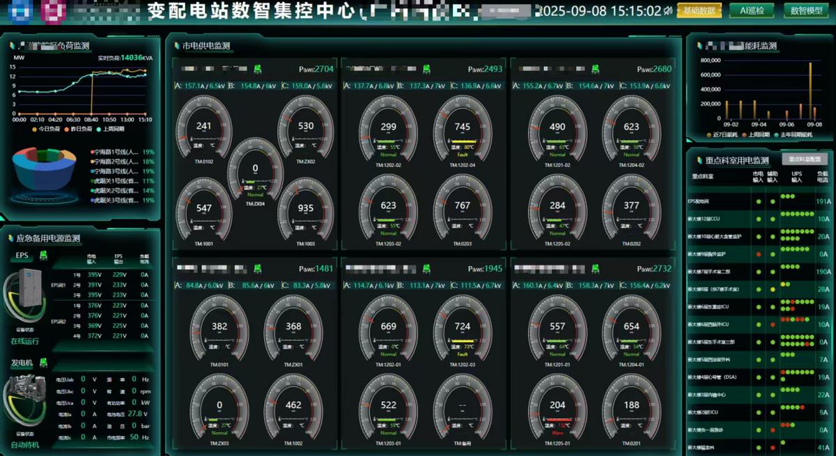同時,為了幫助用戶更好地進(jìn)行配電房智慧運維,平臺將醫(yī)院UPS/EPS及柴發(fā)納入監(jiān)管、支持巡檢機(jī)器人和人臉門禁的遠(yuǎn)程監(jiān)控、可聯(lián)動攝像頭查看故障設(shè)備、時刻關(guān)注消防滅火裝置狀態(tài)。這些特色功能對該院的用電安全及管理起到幫助。